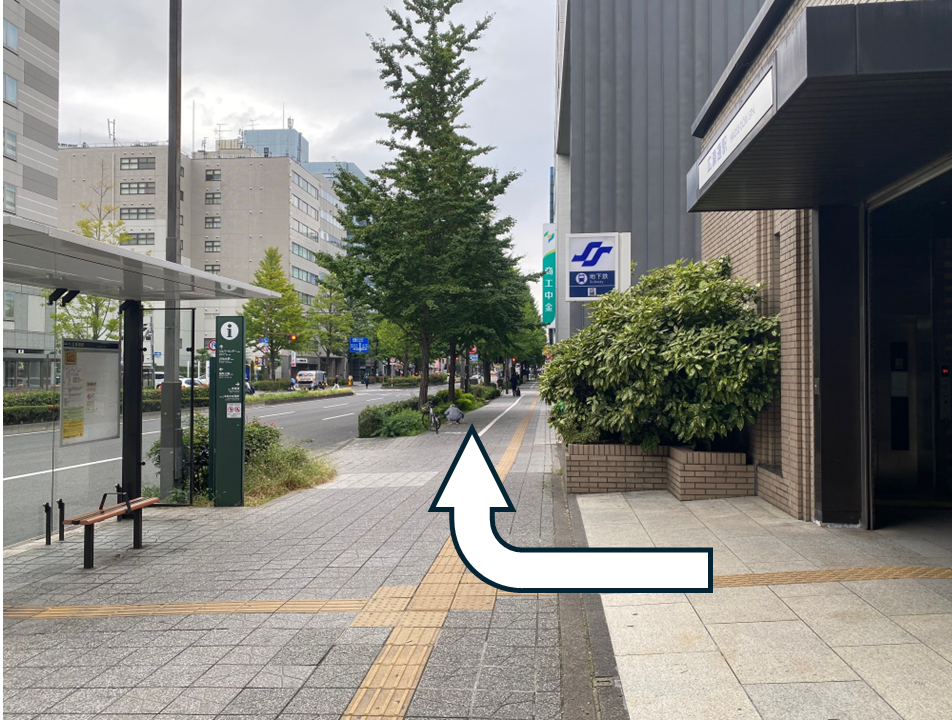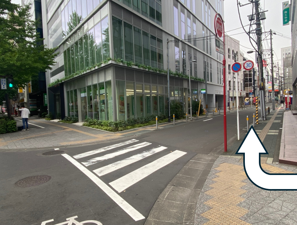 愛宕上杉通りの交差点を直進し、次の信号で右折してください